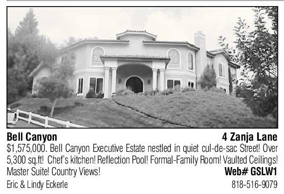 Bell Canyon 4 Zanja Lane $1,575,000. Bell Canyon Executive Estate nestled in quiet cul-de-sac Street! Over 5,300 sq.ft! Chef’s kitchen! Reflection Pool! Formal-Family Room! Vaulted Ceilings!
