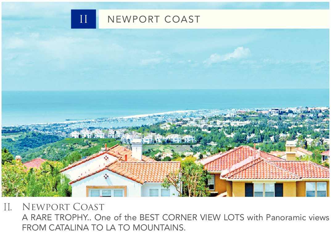I I. Newport Coast A RARE TROPHY.. One of the BEST CORNER VIEW LOTS with Panoramic views FROM CATALINA TO LA TO MOUNTAINS.