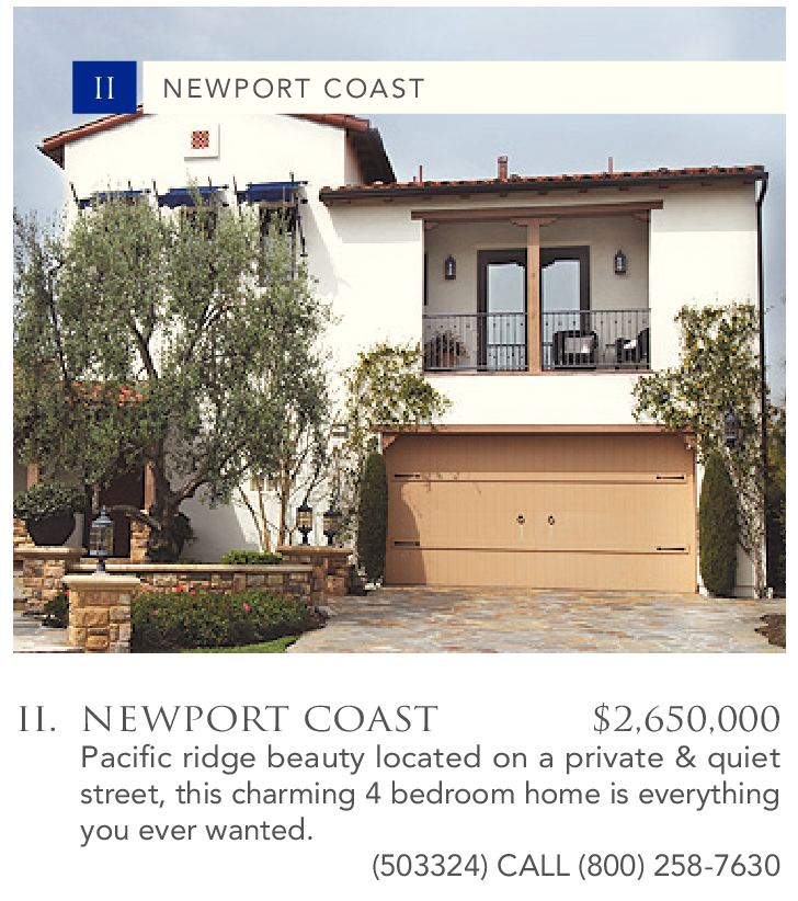 NEWPORT COAST $2,650,000 Pacific ridge beauty located on a private & quiet street, this charming 4 bedroom home is everything you ever wanted.