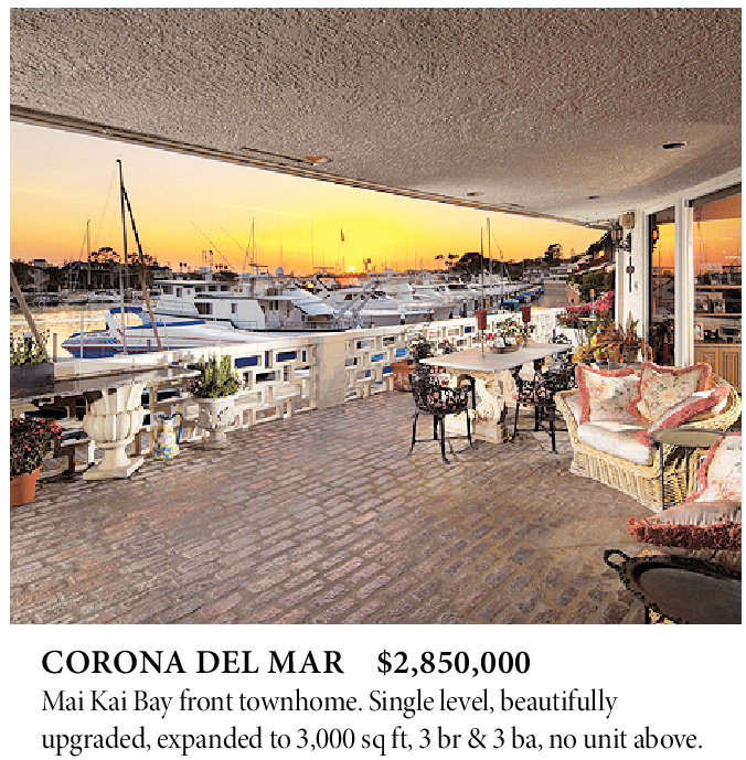 CORONA DEL MAR $2,850,000 Mai Kai Bay front townhome. Single level, beautifully upgraded, expanded to 3,000 sq ft, 3 br & 3 ba, no unit above.