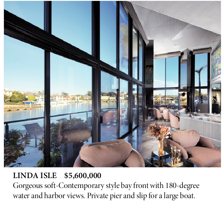 LINDA ISLE $5,600,000 Gorgeous soft-Contemporary style bay front with 180-degree water and harbor views. Private pier and slip for a large boat.