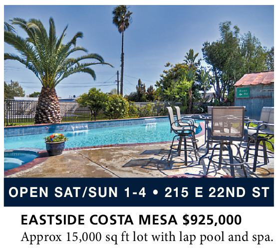 EASTSIDE COSTA MESA $925,000 Approx 15,000 sq ft lot with lap pool and spa.