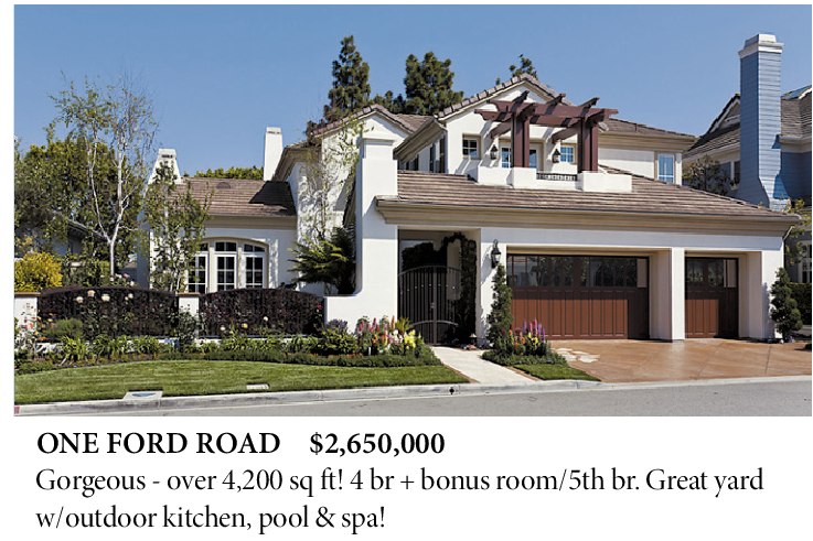 ONE FORD ROAD $2,650,000 Gorgeous - over 4,200 sq ft! 4 br + bonus room/5th br. Great yard w/outdoor kitchen, pool & spa!