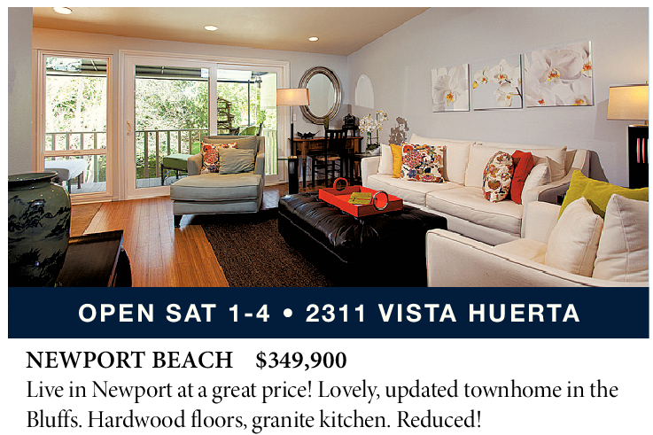 NEWPORT BEACH $349,900 Live in Newport at a great price! Lovely, updated townhome in the Bluffs. Hardwood floors, granite kitchen. Reduced!