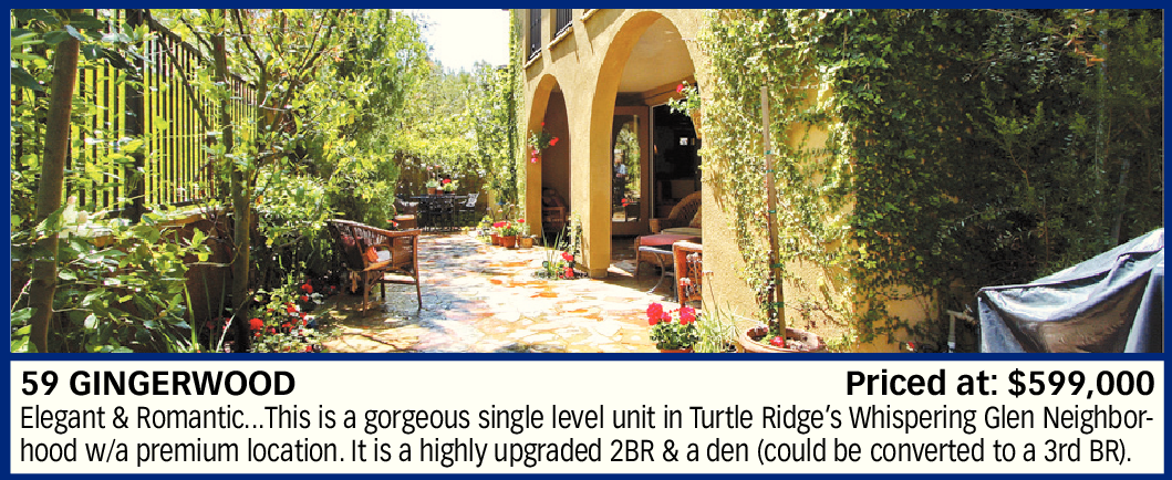 59 GINGERWOOD Priced at: $599,000 Elegant & Romantic...This is a gorgeous single level unit in Turtle Ridge’s Whispering Glen Neighborhood w/a premium location. It is a highly upgraded 2BR & a den (could be converted to a 3rd BR).