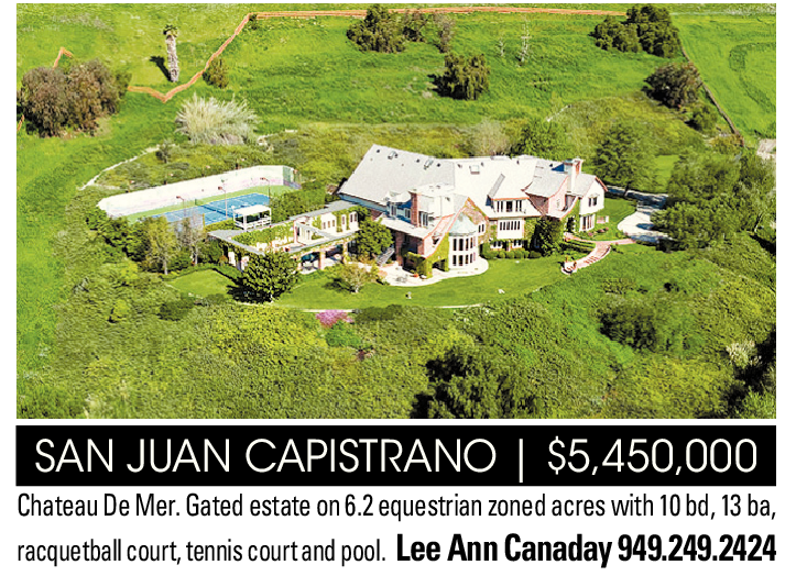 Chateau De Mer. Gated estate on 6.2 equestrian zoned acres with 10 bd, 13 ba, racquetball court, tennis court and pool. Lee Ann Canaday 949.249.2424
