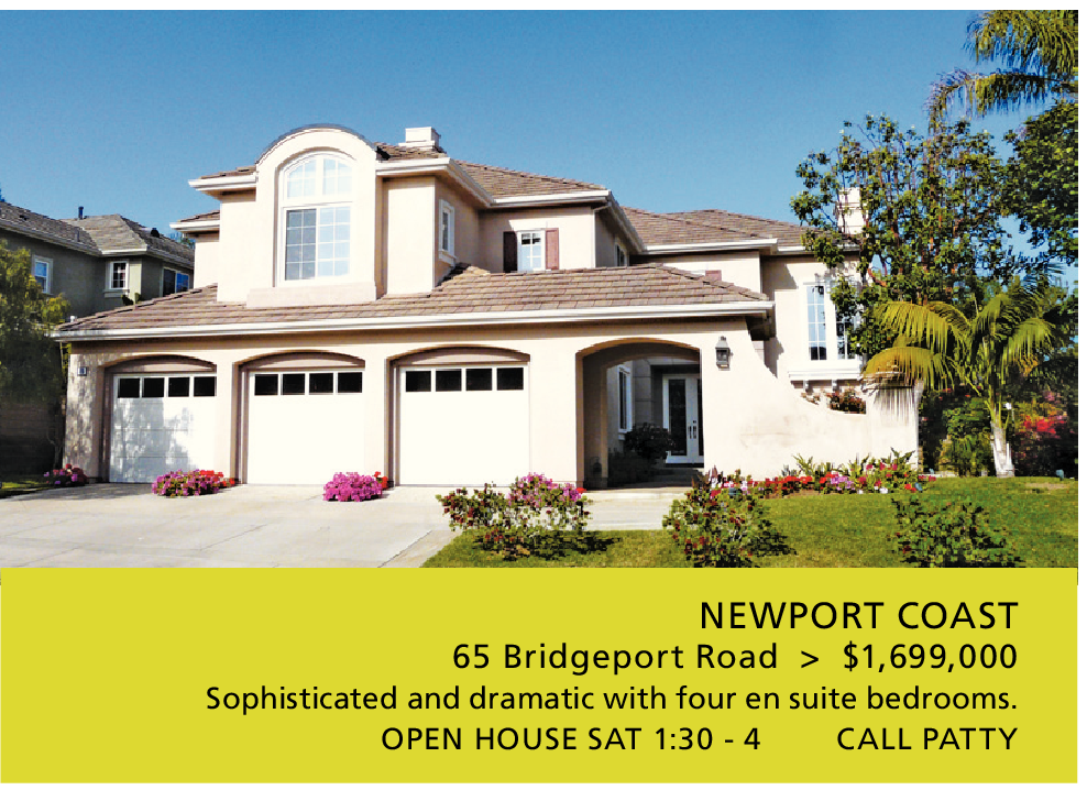 NEWPORT COAST 65 Bridgeport Road > $1,699,000 Sophisticated and dramatic with four en suite bedrooms.