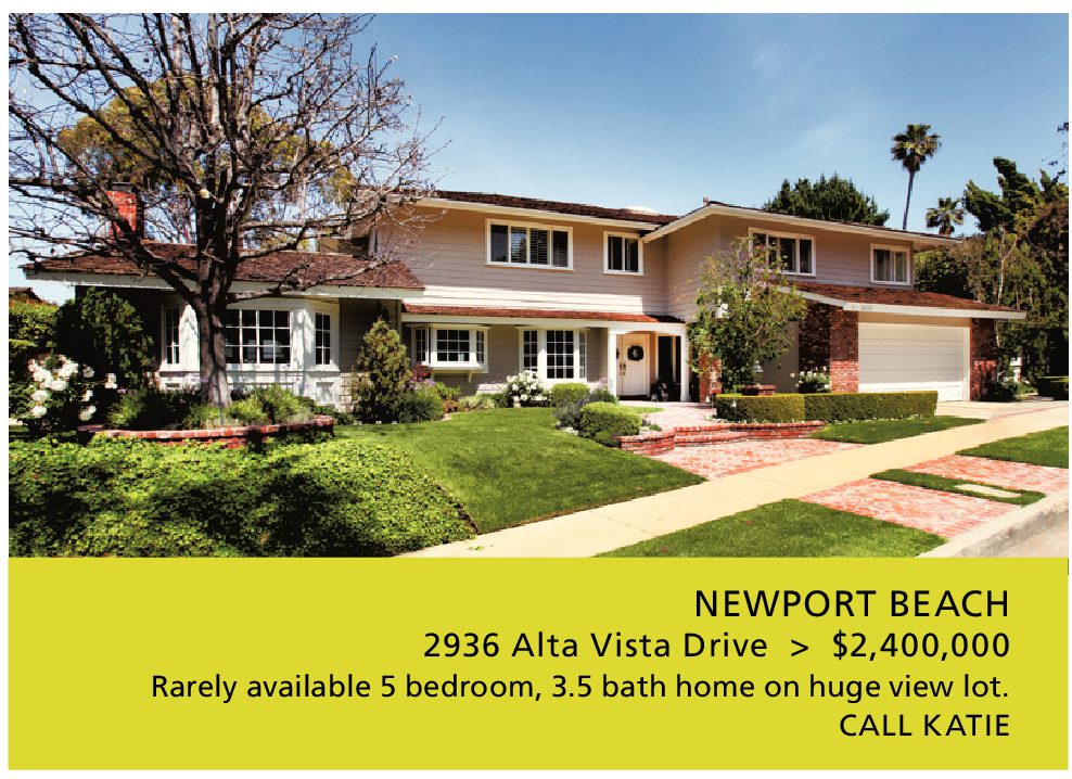 NEWPORT BEACH 2936 Alta Vista Drive > $2,400,000 Rarely available 5 bedroom, 3.5 bath home on huge view lot.