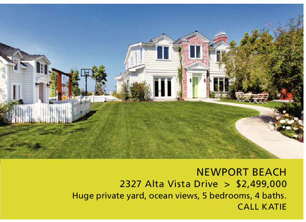 NEWPORT BEACH 2327 Alta Vista Drive > $2,499,000 Huge private yard, ocean views, 5 bedrooms, 4 baths.