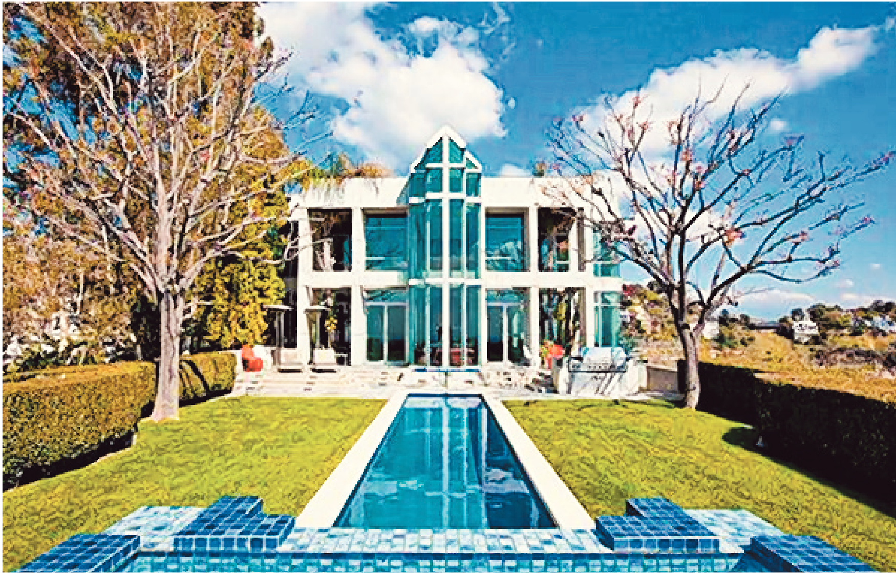 SPARKLING: The swimming pool captures the reflection of the contemporary house, listed for $10.9 million.