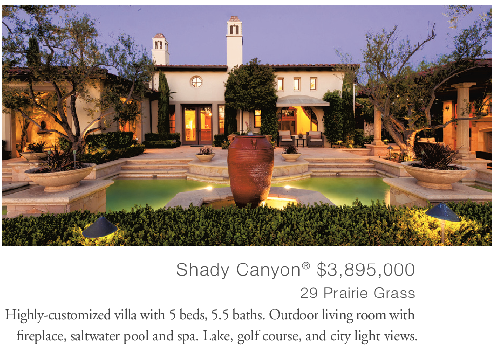 29 Prairie Grass Highly-customized villa with 5 beds, 5.5 baths. Outdoor living room with fireplace, saltwater pool and spa. Lake, golf course, and city light views.
