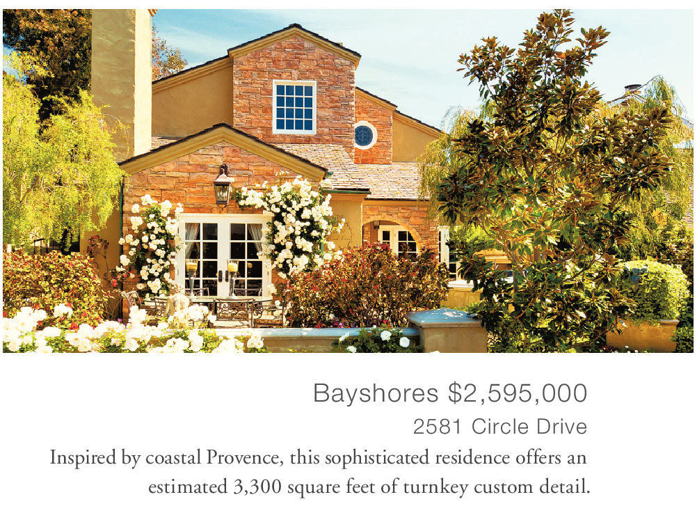 2581 Circle Drive Inspired by coastal Provence, this sophisticated residence offers an estimated 3,300 square feet of turnkey custom detail.