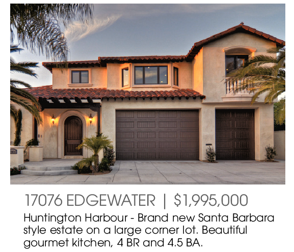17076 EDGEWATER | $1,995,000 Huntington Harbour - Brand new Santa Barbara style estate on a large corner lot. Beautiful gourmet kitchen, 4 BR and 4.5 BA.