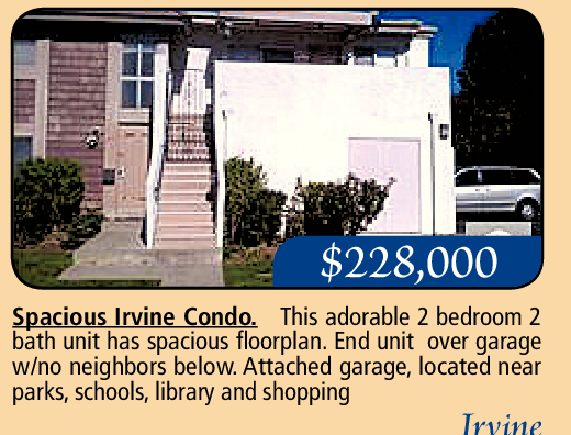 Spacious Irvine Condo. This adorable 2 bedroom 2 bath unit has spacious floorplan. End unit over garage w/no neighbors below. Attached garage, located near parks, schools, library and shopping