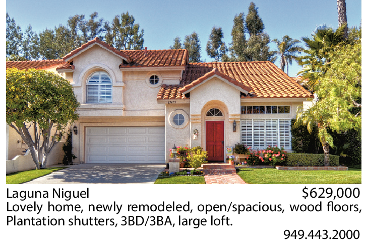 Laguna Niguel $629,000 Lovely home, newly remodeled, open/spacious, wood floors, Plantation shutters, 3BD/3BA, large loft.