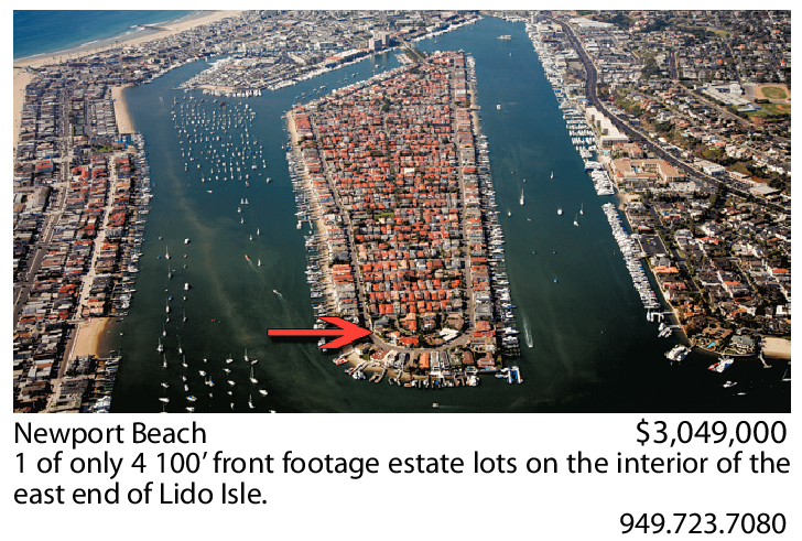 Newport Beach $3,049,000 1 of only 4 100’ front footage estate lots on the interior of the east end of Lido Isle.