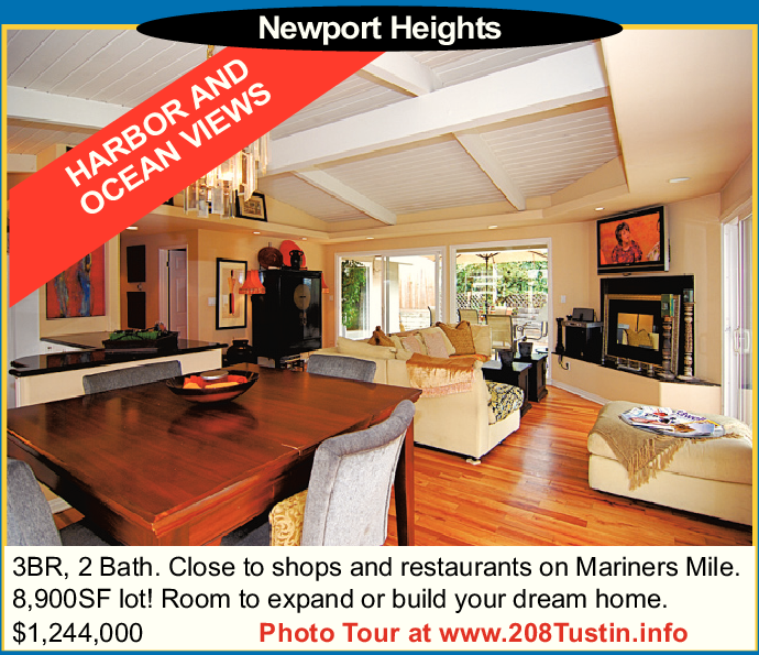 3BR, 2 Bath. Close to shops and restaurants on Mariners Mile. 8,900SF lot! Room to expand or build your dream home. $1,244,000 Photo Tour at www.208Tustin.info