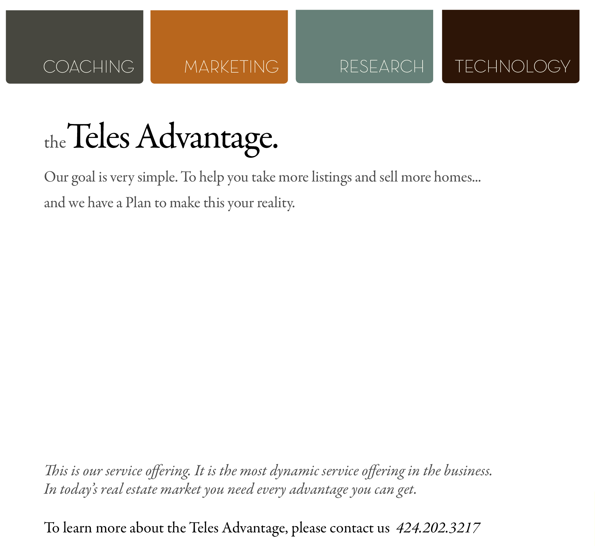 This is our service offering. It is the most dynamic service offering in the business. In today’s real estate market you need every advantage you can get.
