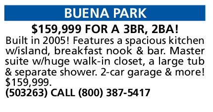 BUENA PARK $159,999 FOR A 3BR, 2BA!
