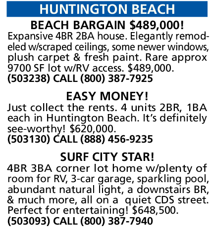 Just collect the rents. 4 units 2BR, 1BA each in Huntington Beach. It’s definitely see-worthy! $620,000. (503130) CALL (888) 456-9235 SURF CITY STAR!