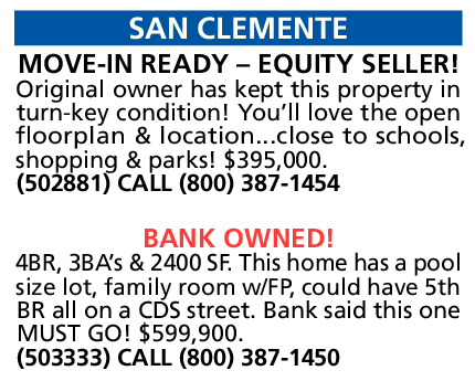 4BR, 3BA’s & 2400 SF. This home has a pool size lot, family room w/FP, could have 5th BR all on a CDS street. Bank said this one MUST GO! $599,900. (503333) CALL (800) 387-1450