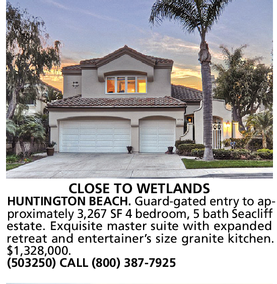 CLOSE TO WETLANDS HUNTINGTON BEACH. Guard-gated entry to approximately 3,267 SF 4 bedroom, 5 bath Seacliff estate. Exquisite master suite with expanded retreat and entertainer’s size granite kitchen. $1,328,000.