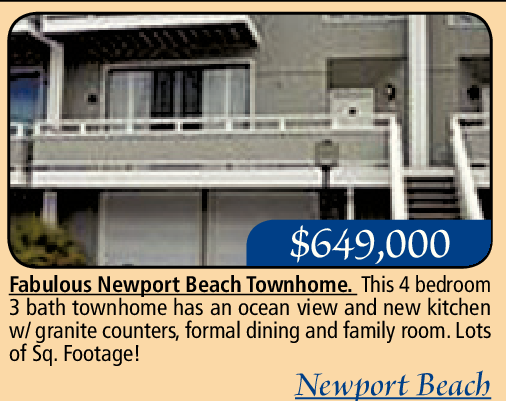 Fabulous Newport Beach Townhome. This 4 bedroom 3 bath townhome has an ocean view and new kitchen w/ granite counters, formal dining and family room. Lots of Sq. Footage!