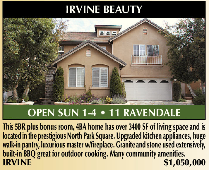 This 5BR plus bonus room, 4BA home has over 3400 SF of living space and is located in the prestigious North Park Square. Upgraded kitchen appliances, huge walk-in pantry, luxurious master w/fireplace. Granite and stone used extensively, built-in BBQ great for outdoor cooking. Many community amenities. IRVINE $1,050,000