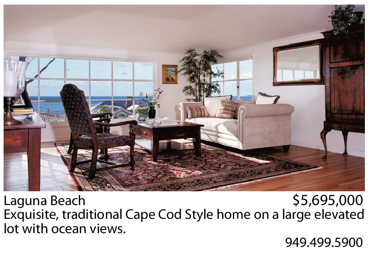 Laguna Beach $5,695,000 Exquisite, traditional Cape Cod Style home on a large elevated lot with ocean views.