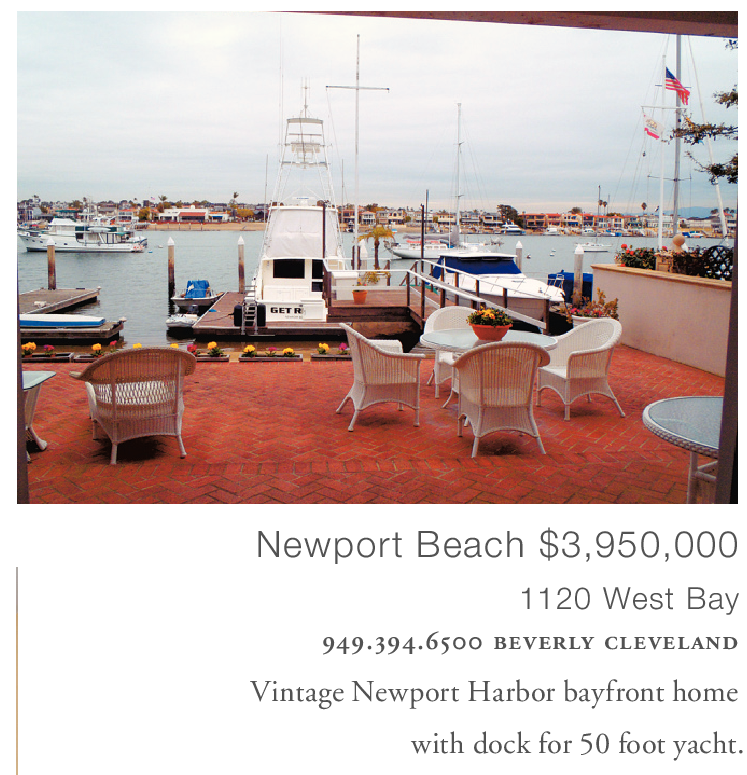 Newport Beach $3,950,000 1120 West Bay 949.394.6500 beverly cleveland