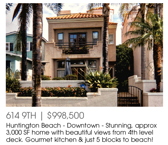 614 9TH | $998,500 Huntington Beach - Downtown - Stunning, approx 3,000 SF home with beautiful views from 4th level deck. Gourmet kitchen & just 5 blocks to beach!