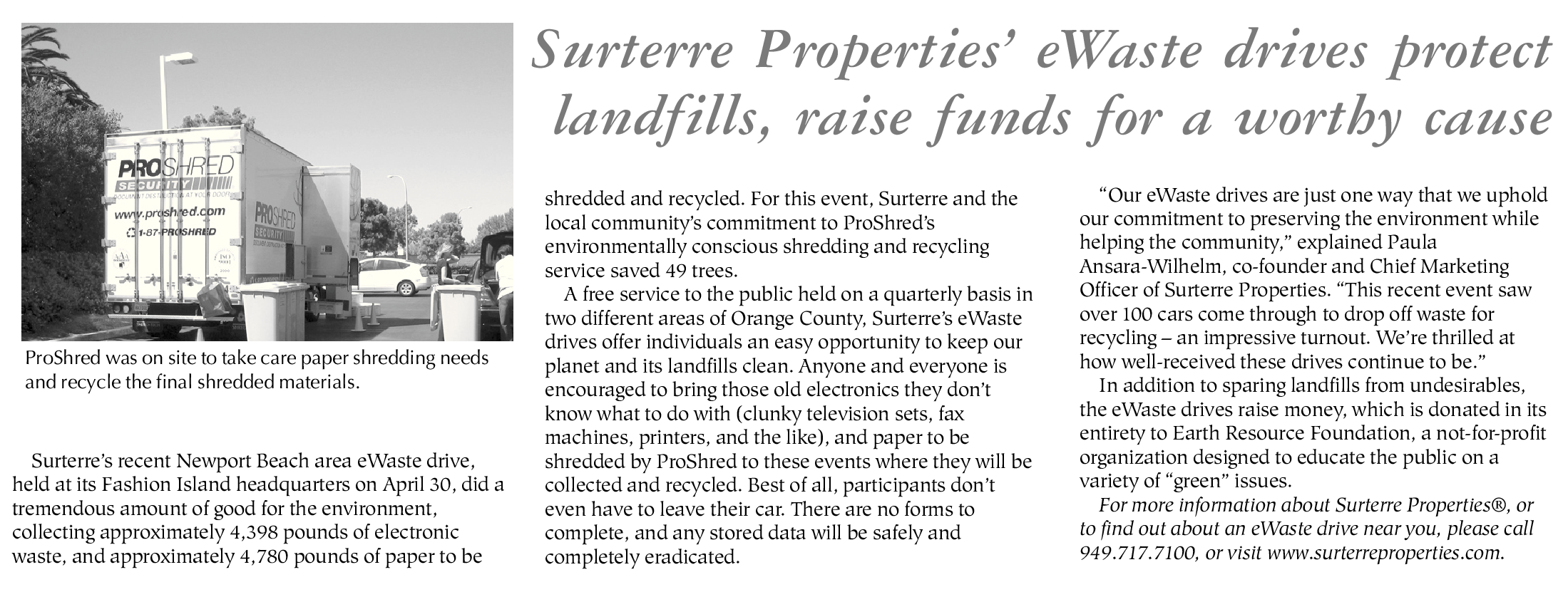 For more information about Surterre Properties®, or to find out about an eWaste drive near you, please call 949.717.7100, or visit www.surterreproperties.com.