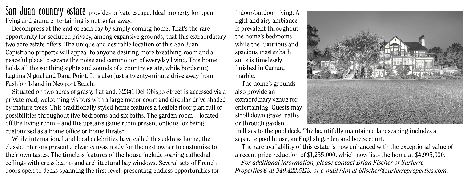 For additional information, please contact Brian Fischer of Surterre Properties® at 949.422.5113, or e-mail him at bfischer@surterreproperties.com.