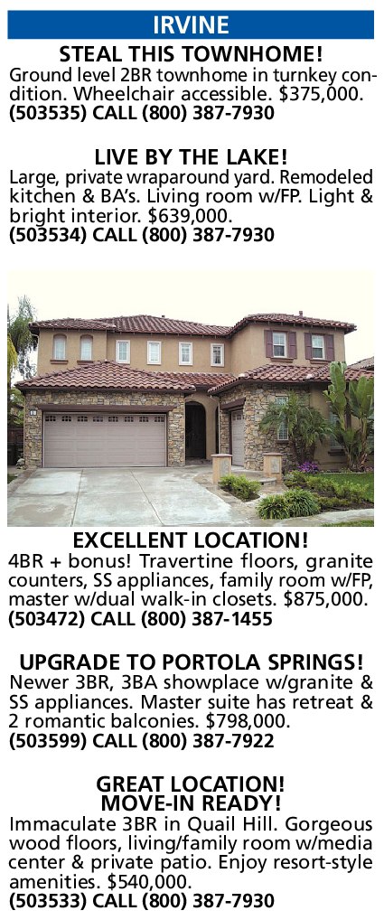 Immaculate 3BR in Quail Hill. Gorgeous wood floors, living/family room w/media center & private patio. Enjoy resort-style amenities. $540,000.