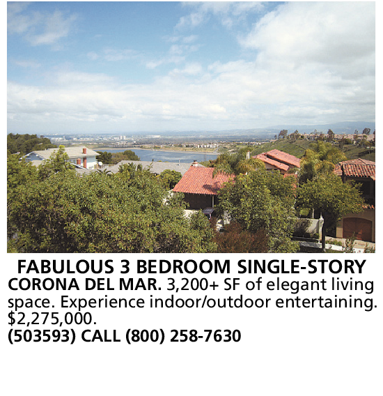 FABULOUS 3 BEDROOM SINGLE-STORY CORONA DEL MAR. 3,200+ SF of elegant living space. Experience indoor/outdoor entertaining. $2,275,000. (503593) CALL (800) 258-7630