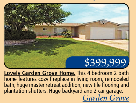 Lovely Garden Grove Home. This 4 bedroom 2 bath home features cozy fireplace in living room, remodeled bath, huge master retreat addition, new tile flooring and plantation shutters. Huge backyard and 2 car garage.