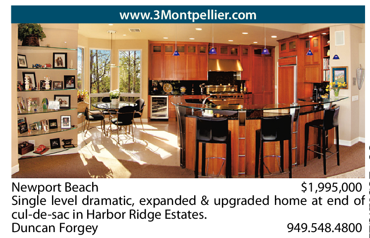 Newport Beach $1,995,000 Single level dramatic, expanded & upgraded home at end of cul-de-sac in Harbor Ridge Estates. Duncan Forgey 949.548.4800