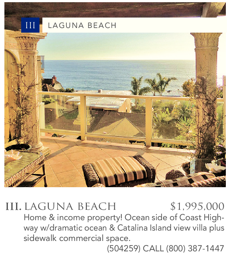 LAGUNA BEACH $1,995,000 Home & income property! Ocean side of Coast Highway w/dramatic ocean & Catalina Island view villa plus sidewalk commercial space.