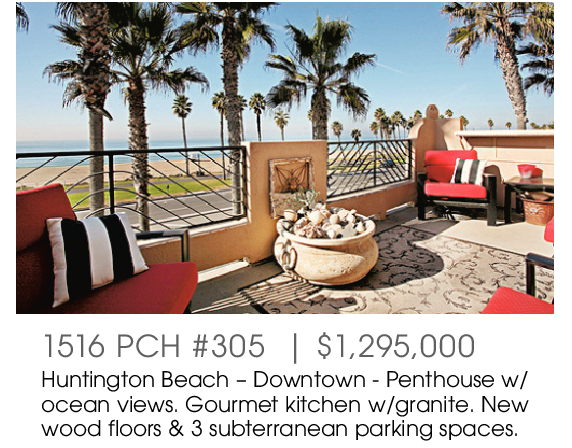 1516 PCH #305 | $1,295,000 Huntington Beach – Downtown - Penthouse w/ ocean views. Gourmet kitchen w/granite. New wood floors & 3 subterranean parking spaces.