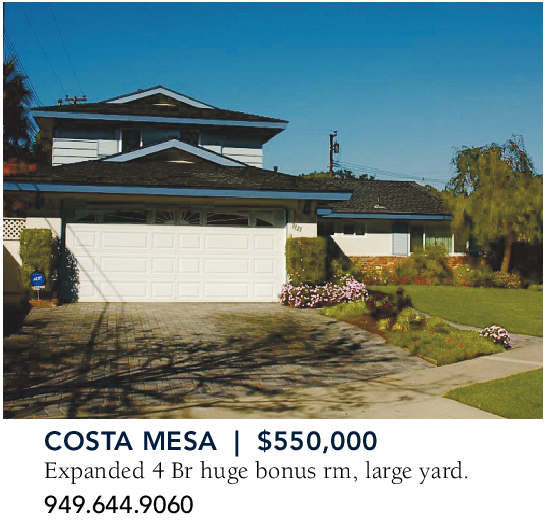 COSTA MESA | $550,000 Expanded 4 Br huge bonus rm, large yard. 949.644.9060