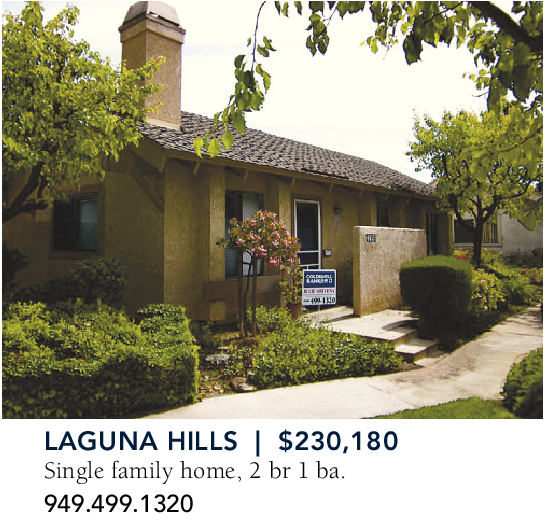LAGUNA HILLS | $230,180 Single family home, 2 br 1 ba. 949.499.1320