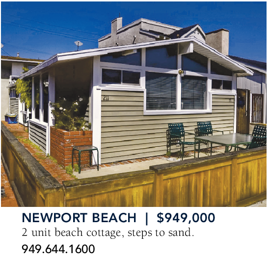NEWPORT BEACH | $949,000 2 unit beach cottage, steps to sand. 949.644.1600