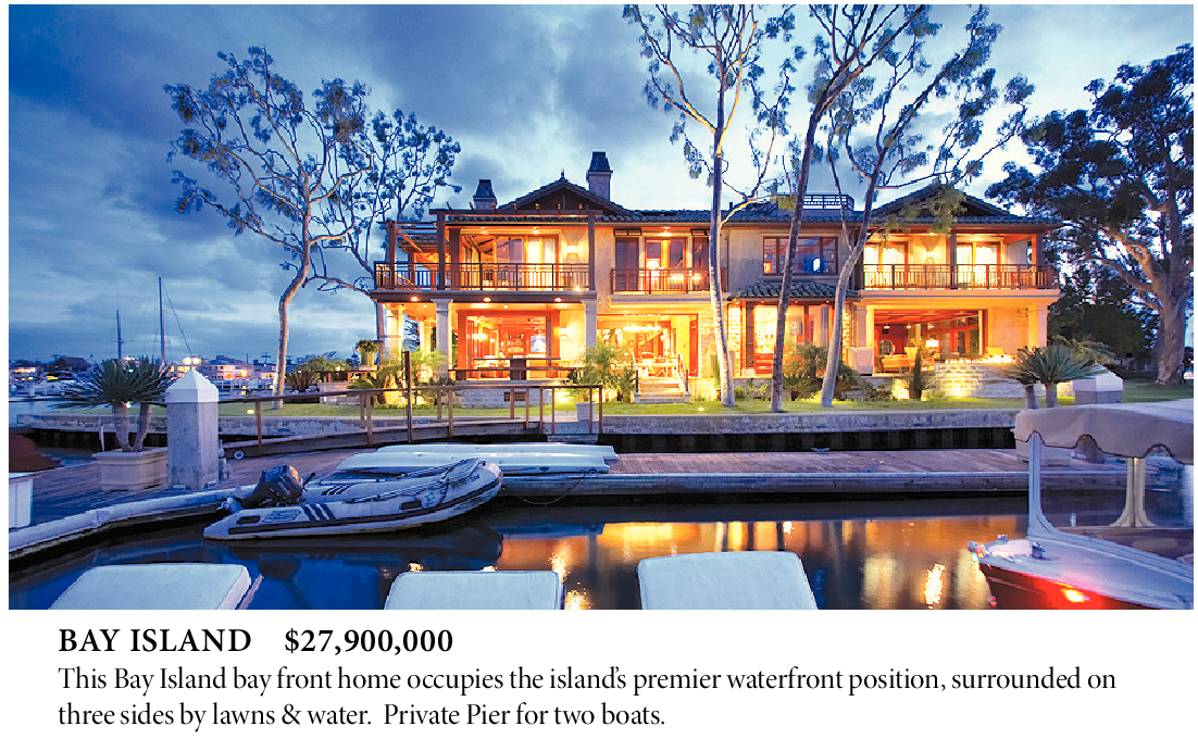 BAY ISLAND $27,900,000 This Bay Island bay front home occupies the island’s premier waterfront position, surrounded on three sides by lawns & water. Private Pier for two boats.