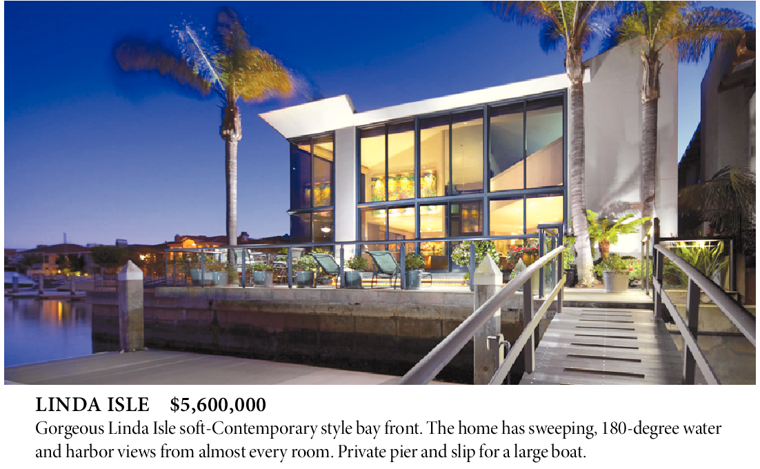 LINDA ISLE $5,600,000 Gorgeous Linda Isle soft-Contemporary style bay front. The home has sweeping, 180-degree water and harbor views from almost every room. Private pier and slip for a large boat.