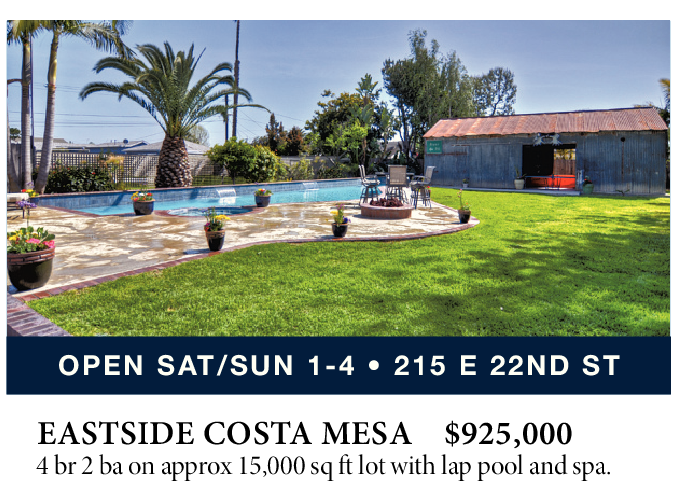 EASTSIDE COSTA MESA $925,000 4 br 2 ba on approx 15,000 sq ft lot with lap pool and spa.
