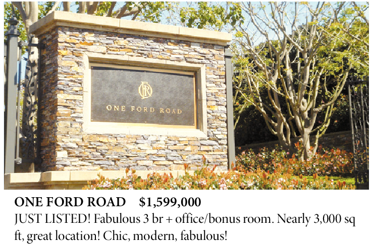 ONE FORD ROAD $1,599,000 JUST LISTED! Fabulous 3 br + office/bonus room. Nearly 3,000 sq ft, great location! Chic, modern, fabulous!