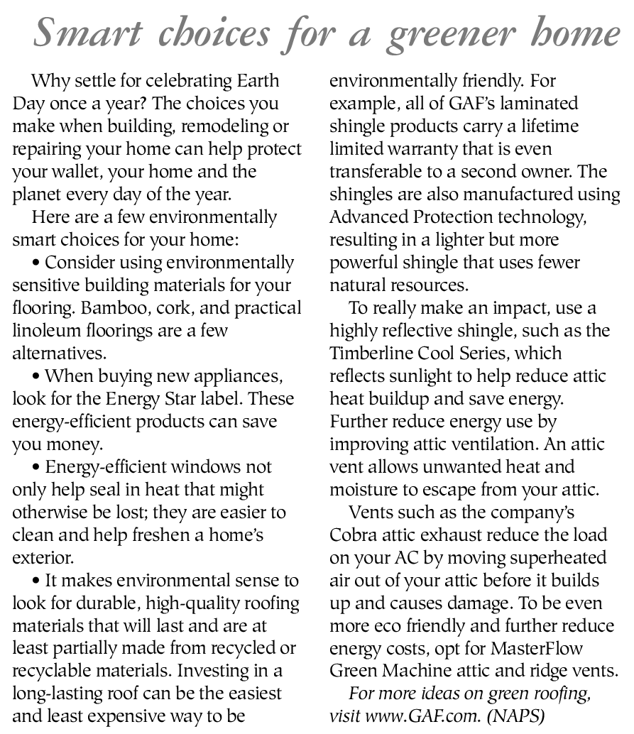 For more ideas on green roofing, visit www.GAF.com. (NAPS)
