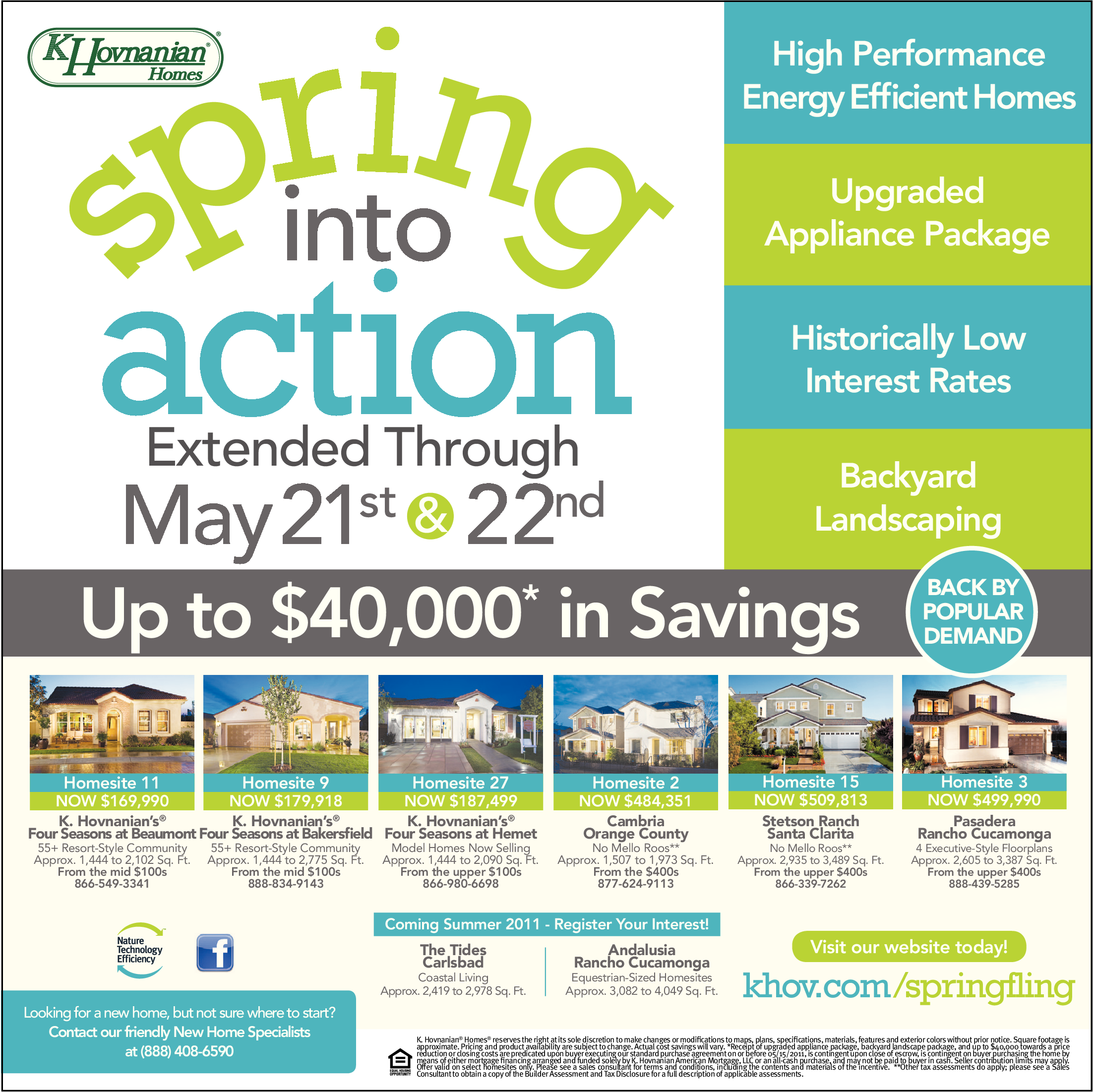 K. Hovnanian ® Homes ® reserves the right at its sole discretion to make changes or modifications to maps, plans, specifications, materials, features and exterior colors without prior notice. Square footage is approximate. Pricing and product availability are subject to change. Actual cost savings will vary. *Receipt of upgraded appliance package, backyard landscape package, and up to $40,000 towards a price reduction or closing costs are predicated upon buyer executing our standard purchase agreement on or before 05/15/2011, is contingent upon close of escrow, is contingent on buyer purchasing the home by means of either mortgage financing arranged and funded solely by K. Hovnanian American Mortgage, LLC or an all-cash purchase, and may not be paid to buyer in cash. Seller contribution limits may apply. Offer valid on select homesites only. Please see a sales consultant for terms and conditions, including the contents and materials of the incentive. **Other tax assessments do apply; please see a Sales Consultant to obtain a copy of the Builder Assessment and Tax Disclosure for a full description of applicable assessments.
