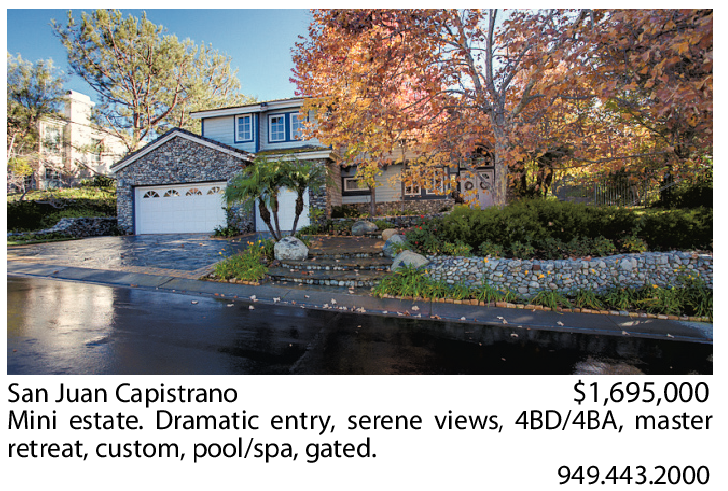 San Juan Capistrano $1,695,000 Mini estate. Dramatic entry, serene views, 4BD/4BA, master retreat, custom, pool/spa, gated.