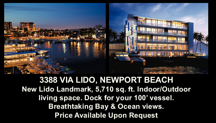 3388 VIA LIDO, NEWPORT BEACH New Lido Landmark, 5,710 sq. ft. Indoor/Outdoor living space. Dock for your 100’ vessel.